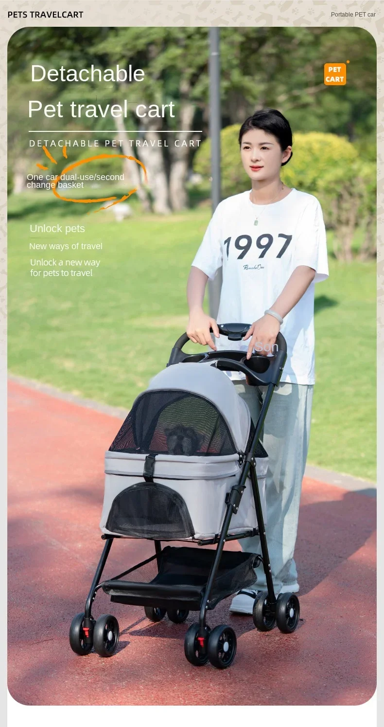 Lightweight Outing Pet Stroller Pull Rod Detachable and Detachable Puppy Stroller Suitable for Small Dogs and Cats