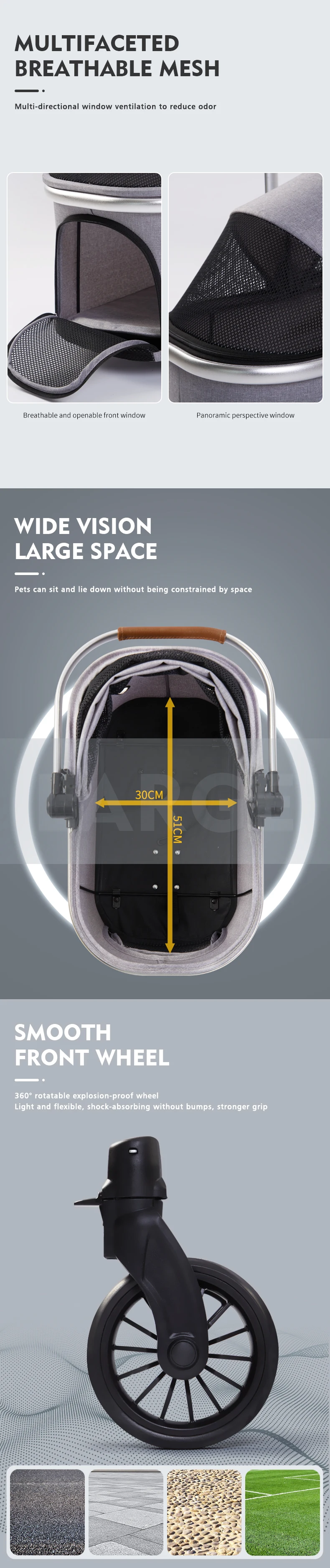 Luxury Pet Stroller Light Dog Carrier Pet Pram 4 Wheels 2 in 1 Foldable Pet Cat Travel Stroller for Small Medium Dog