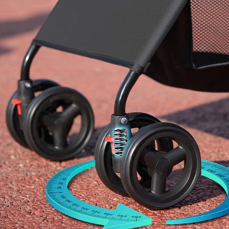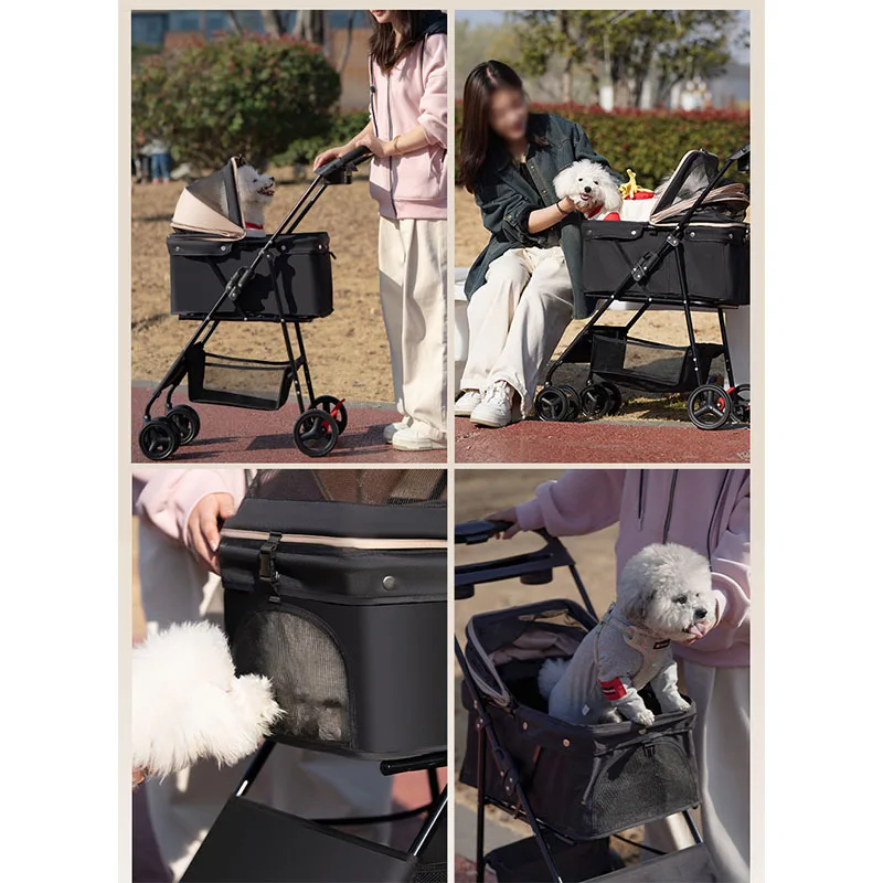 The wheels of the stroller are equipped with shock absorption springs, which can effectively reduce vibration and reduce pet discomfort. You can take your pet to the road, beach, or shopping mall anywhere without worrying about the bumpy roads causing discomfort to your pet.