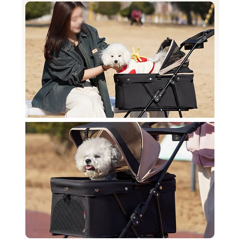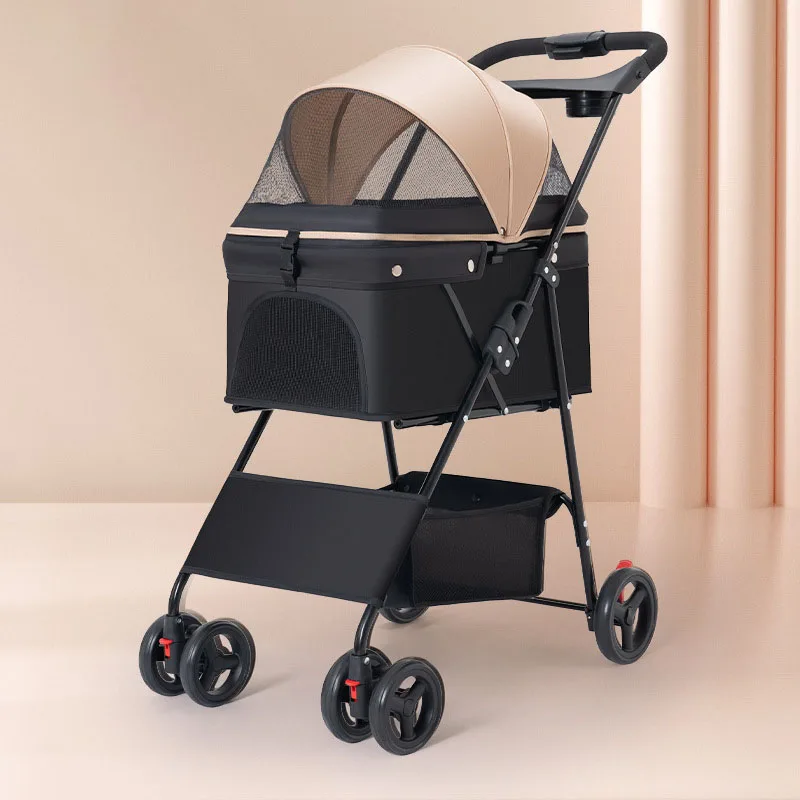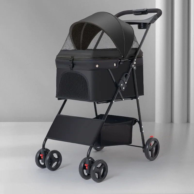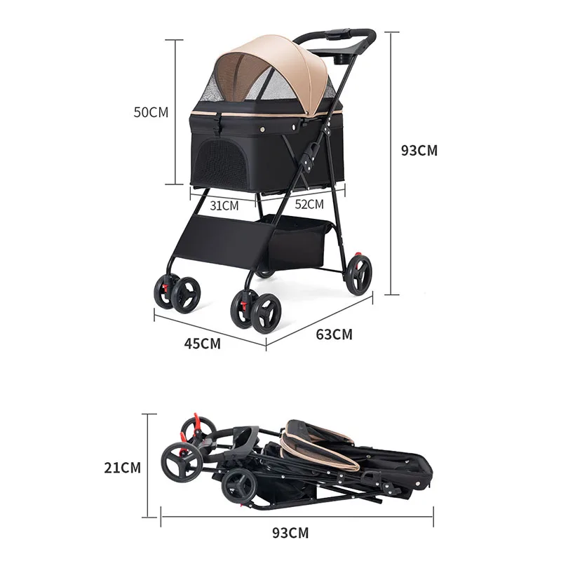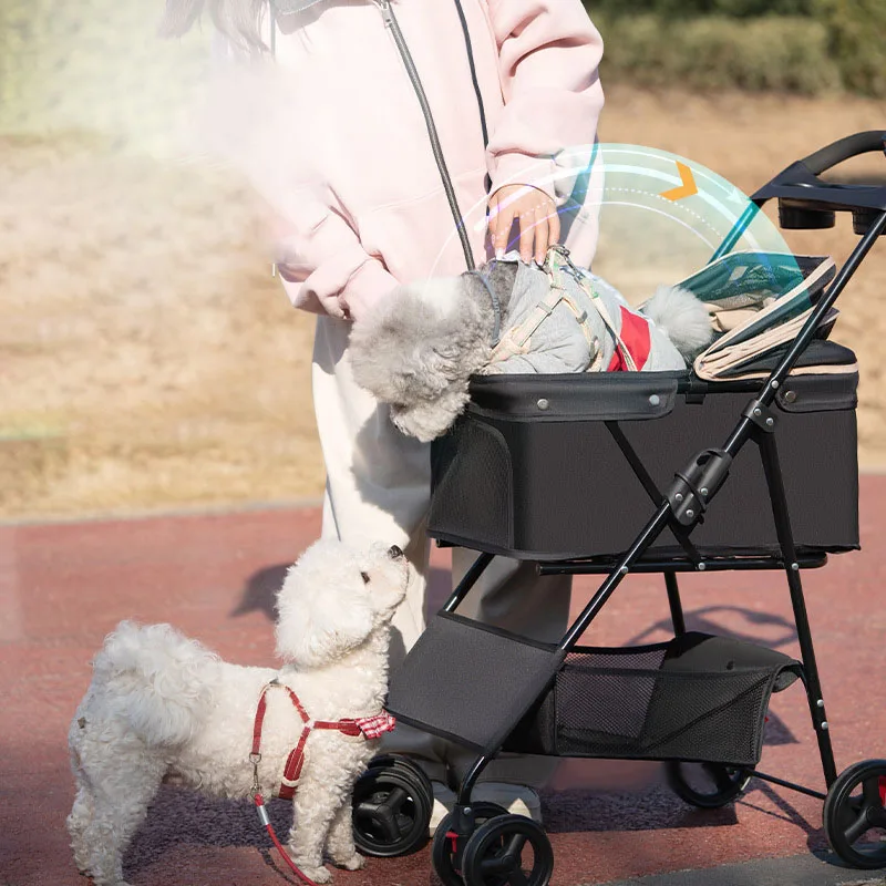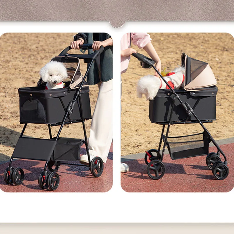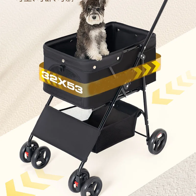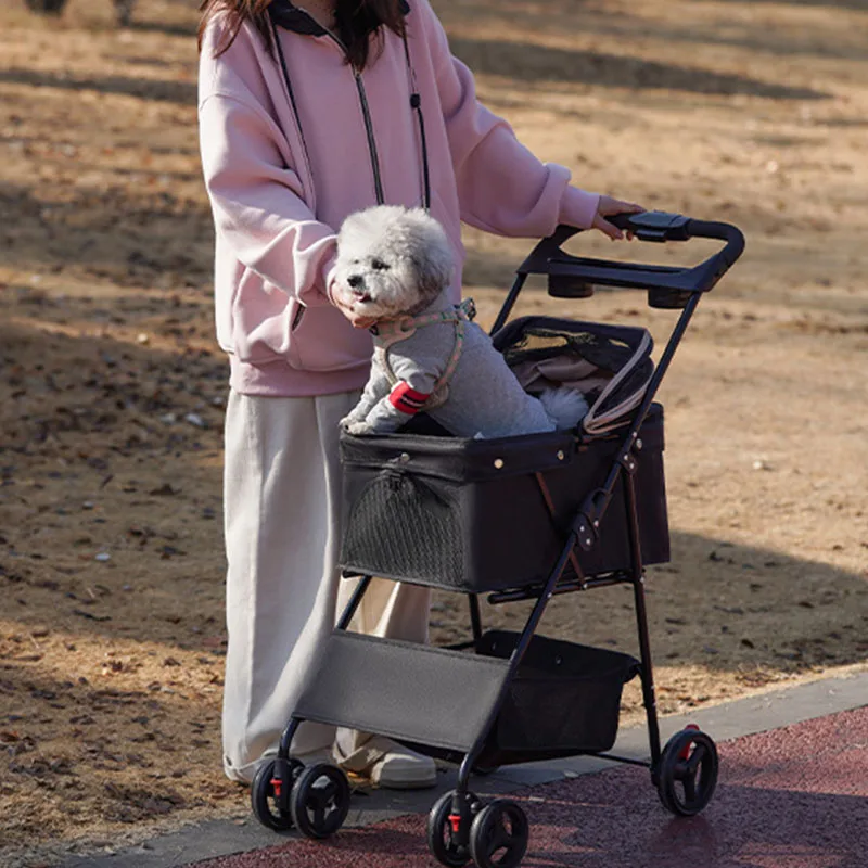 Pet Stroller Foldable Dog Walking Cat Stroller With Storage Basket Collapsible Puppy Jogging Pet Cart For Daily Pet Supplies