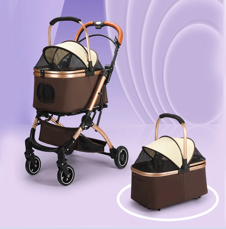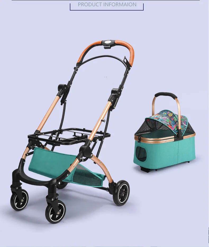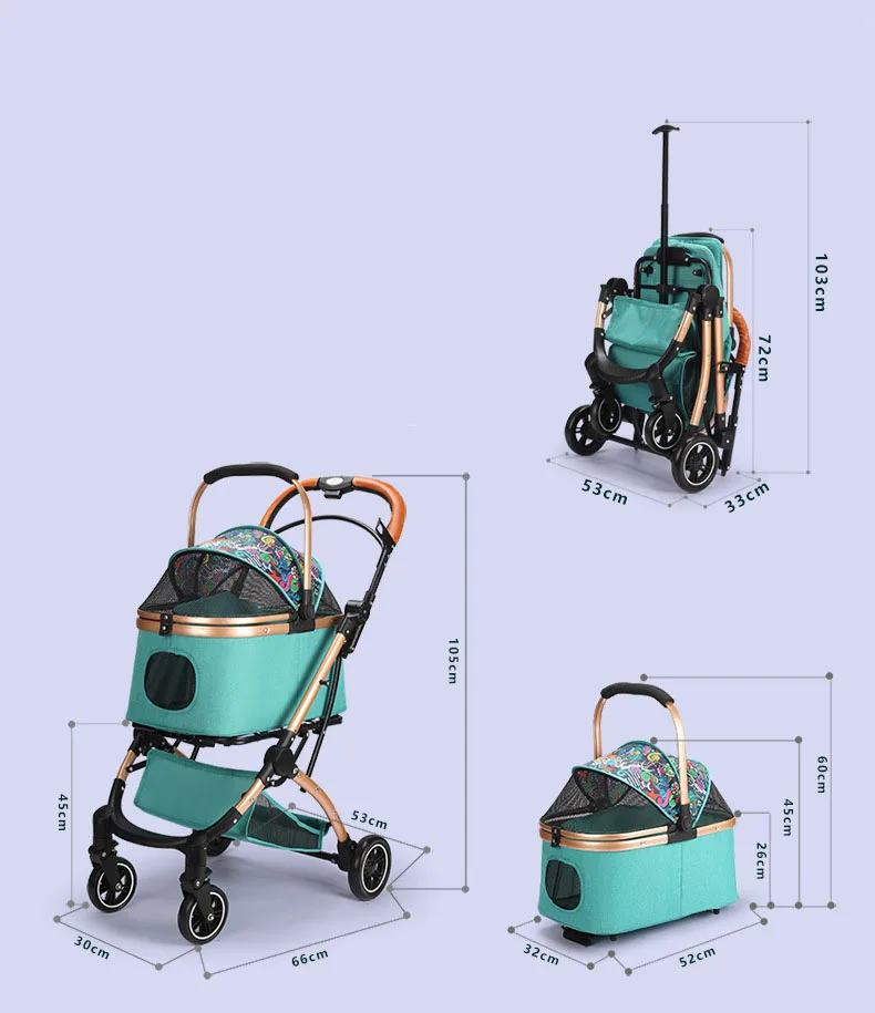 Pet Stroller Travel Dog Stroller 4 Wheel Dog Stroller Foldable Travel Carriage Quick Installation